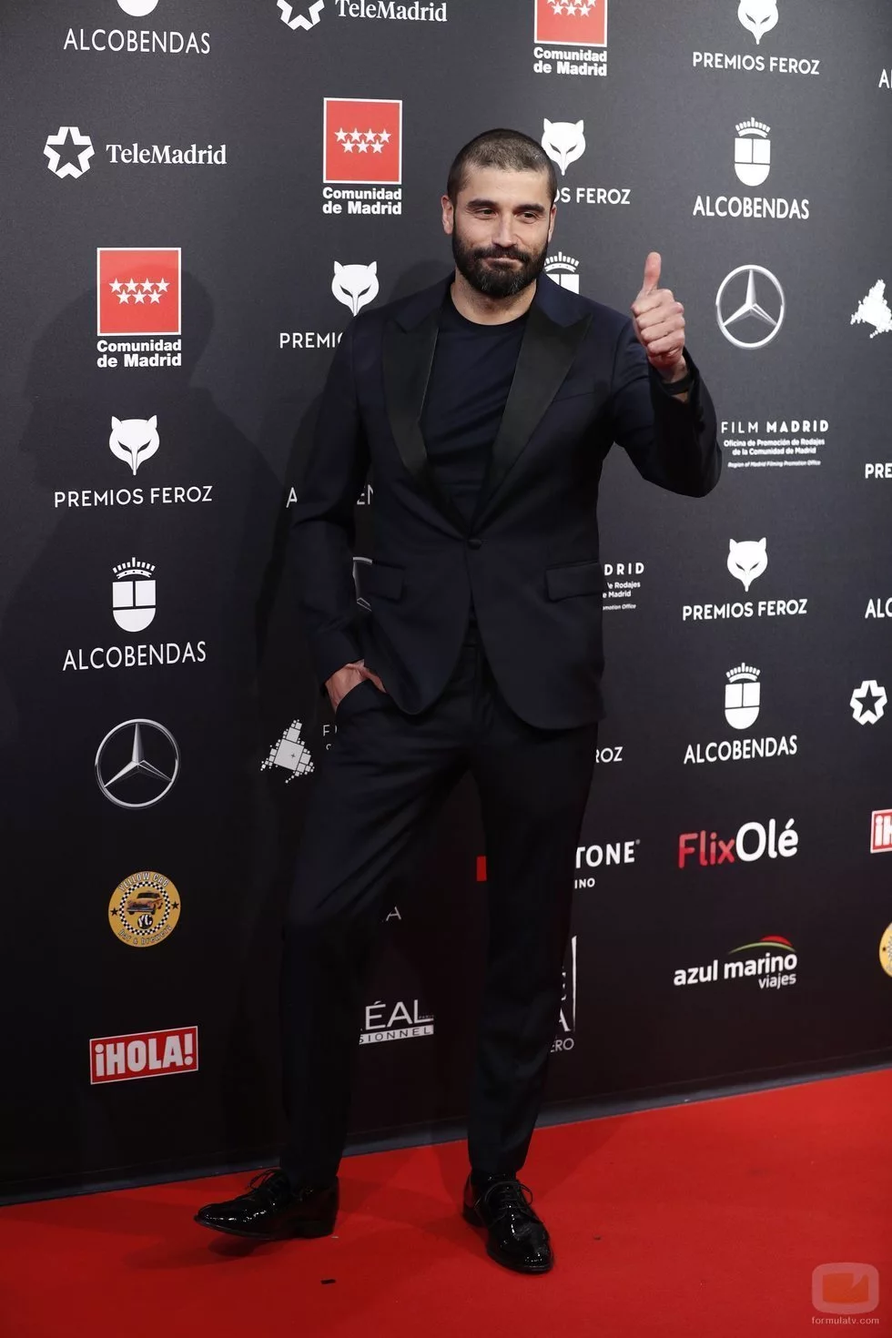 El protagonista de 'Antidisturbios' en Movistar+ y 'Tiempos de guerra' en Antena 3, posa en la alfombra roja de los Premios Feroz 2020.