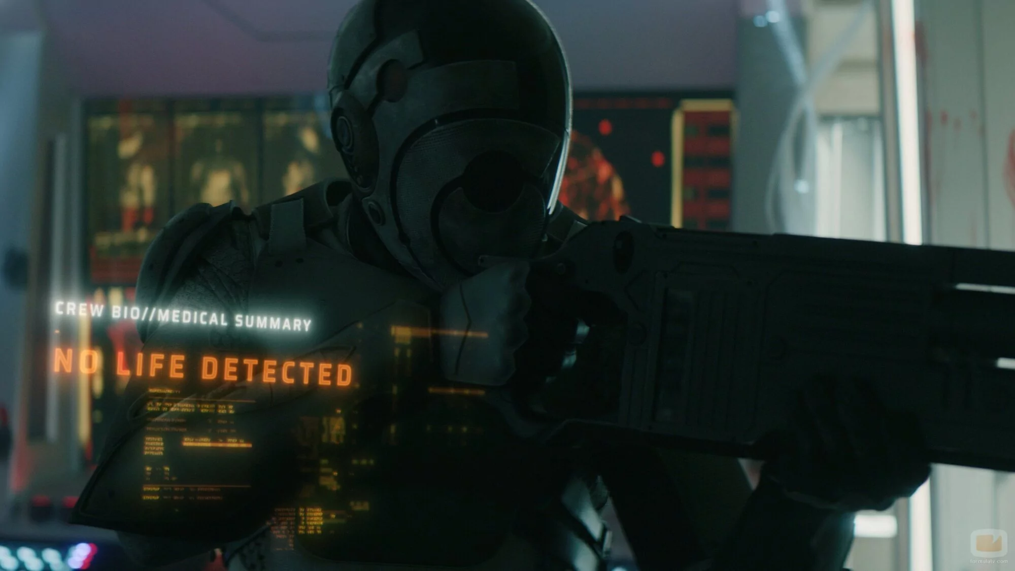 El actor Alexander Skarsgard (Murderbot) en una foto promocional del episodio 'Evaluación de riesgo' de la serie 'Murderbot'.
