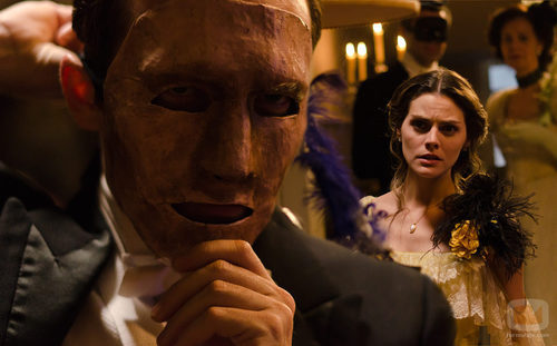 Alicia Alarcón (Amaia Salamnca) acecha a un misterioso invitado durante el baile de máscaras del Gran Hotel.