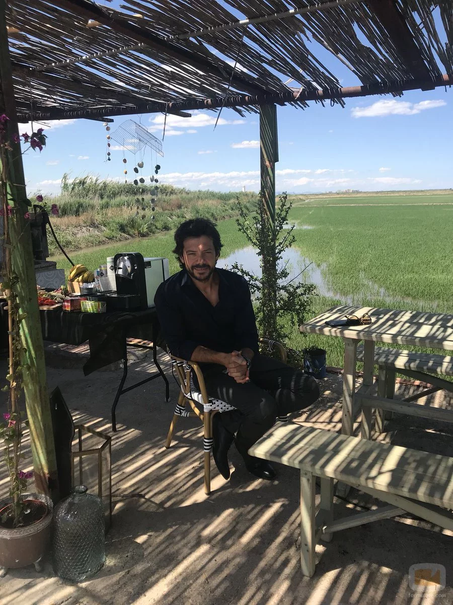 Álvaro Morte en el rodaje de la serie 'El embarcadero'