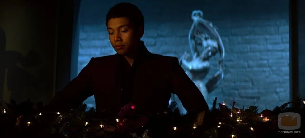 Ambrose Spellman, interpretado por Chance Perdomo, observa con desidia la decoración navideña en la casa de las brujas de este especial de Netflix.