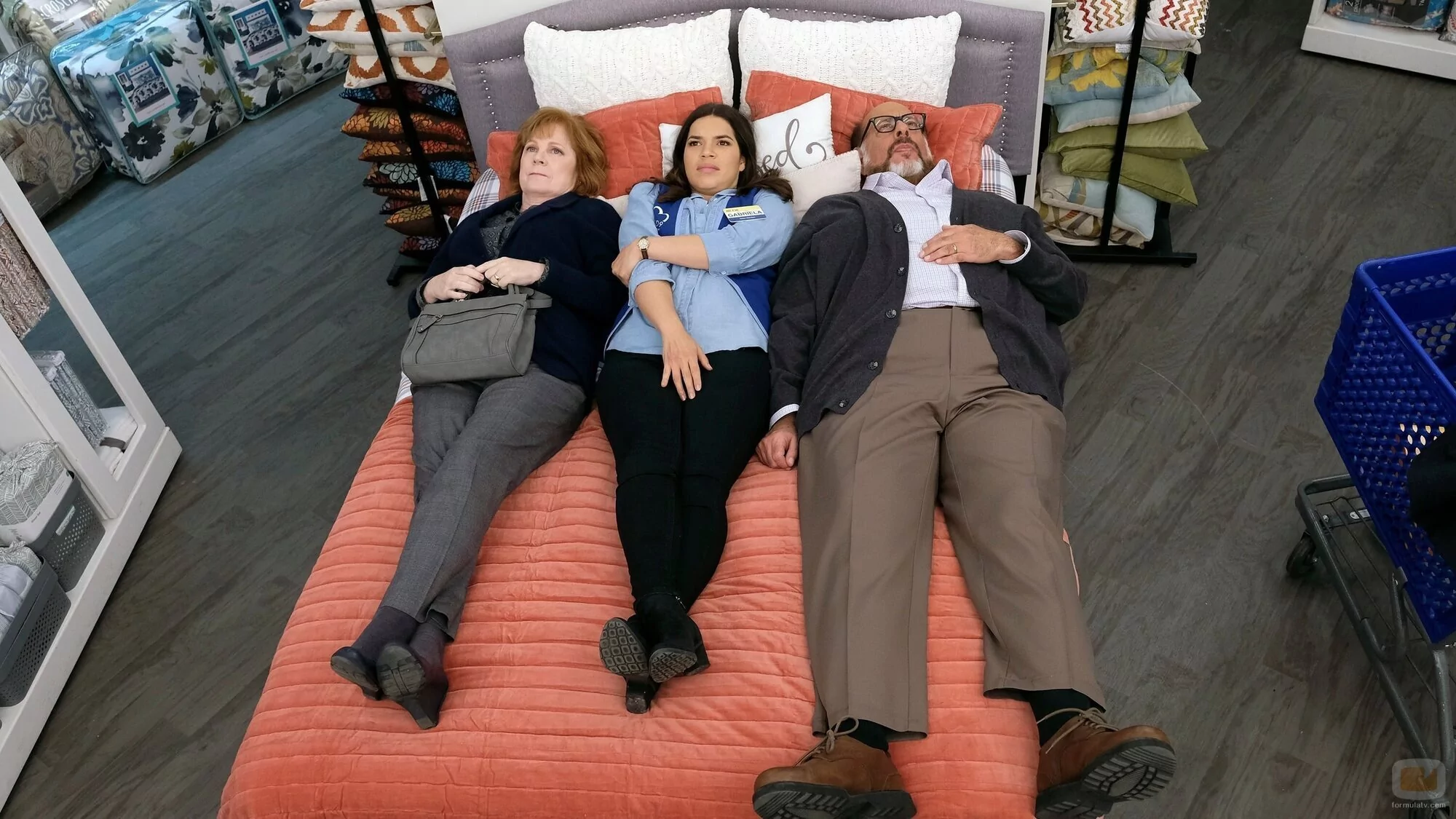 America Ferrera y Fred Melamed aparecen en una imagen promocional del capítulo 'Nueva iniciativa' de 'Superstore'.