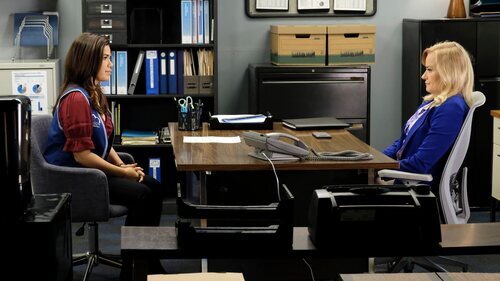 America Ferrera y Jennifer Irwin aparecen en una escena promocional del capítulo 'Delitos menores' de 'Superstore'.