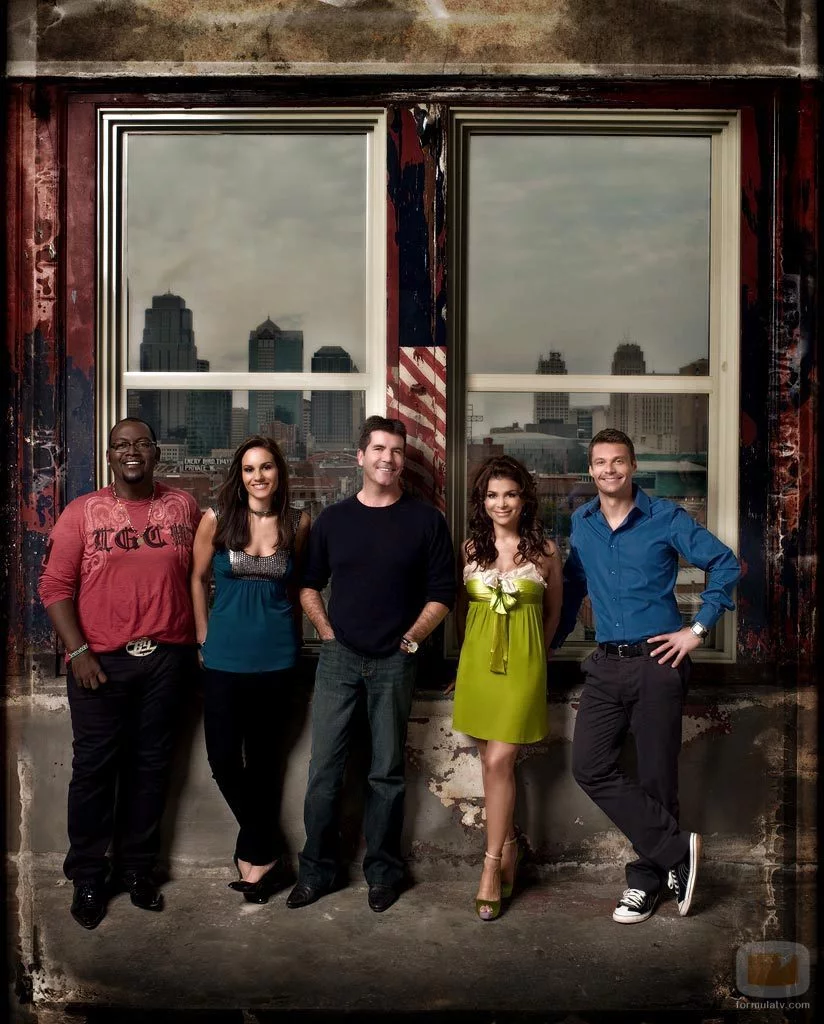 Los jueces Randy Jackson, Kara DioGuardi, Simon Cowell, Paula Adbul y el presentador de 'American Idol', Ryan Seacrest.
