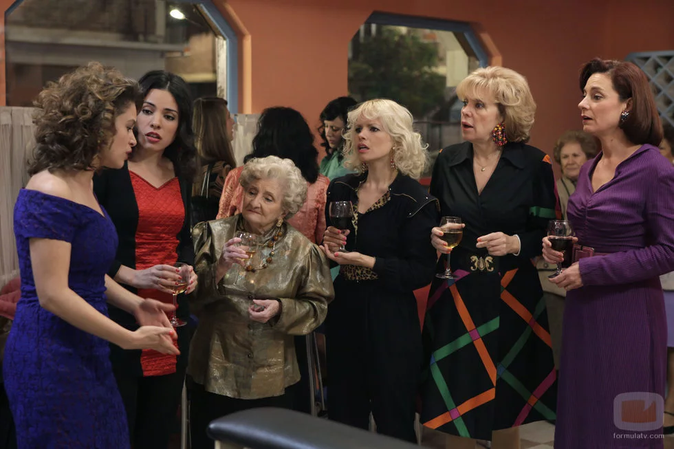 Amparo Pacheco junto a Lluvia Rojo, Ana Arias, Aída Floch y Silvia Espigado en 'Cuéntame como pasó'