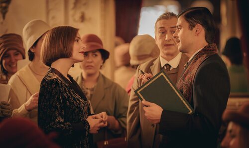 Andrea Duro y Jordi Coll aparecen en una foto promocional del capítulo 'Una fiesta para cambiarlo todo' de 'La Favorita 1922'.