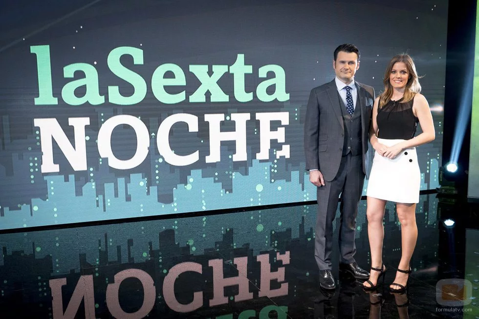 Andrea Ropero e Iñaki Lopez posan frente a la pantalla de 'laSexta Noche'