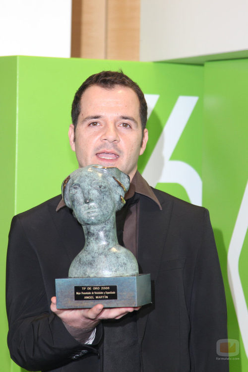 Ángel Martín posa ante la prensa tras recibir el premio TP de Oro al Mejor Presentador de Variedades y Espectáculos.