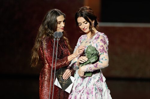 Las actriz Ángela Molina y Penélope Cruz, minutos antes de entregarle a Pedro Almodóvar su Premio Goya 2020 a Mejor Dirección.