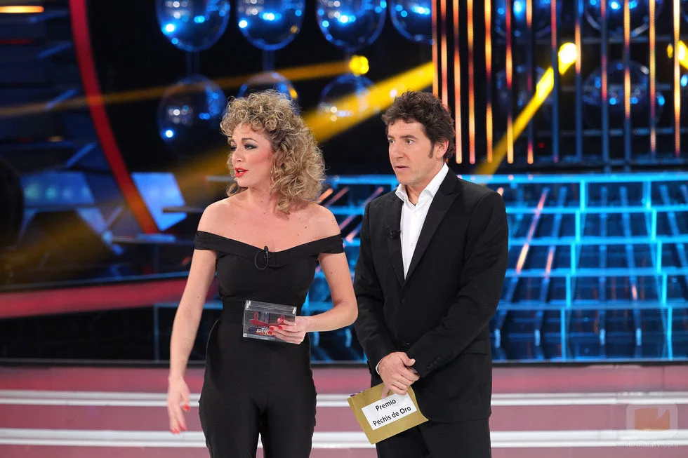 Anna Simon recibe el premio Pechis de oro en la gala final de 'Tu cara me suena'.