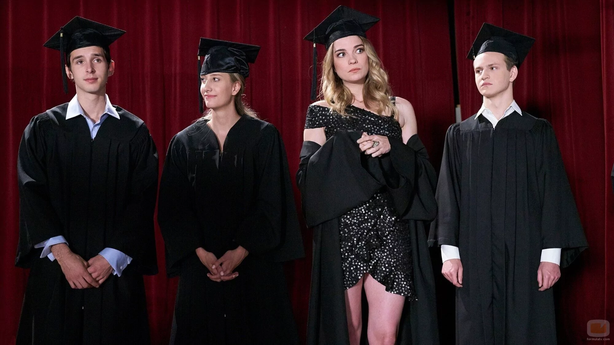 La intérprete Annie Murphy (Alexis Rose) en una escena del episodio 'La graduación' de la serie 'Schitt's Creek'.