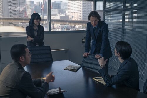 Ansel Elgort y Rinko Kikuchi aparecen en una foto promocional del episodio 'Consecuencias' de la serie 'Tokyo Vice'.