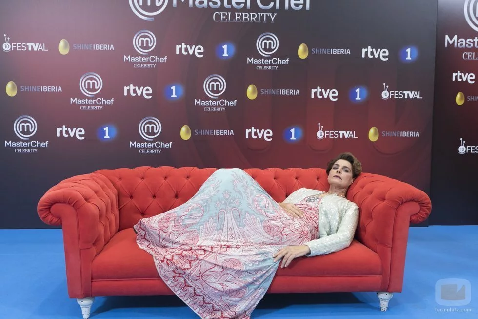 Antonia Dell'Atte tumbada en un sofá en la presentación de 'MasterChef Celebrity 3'