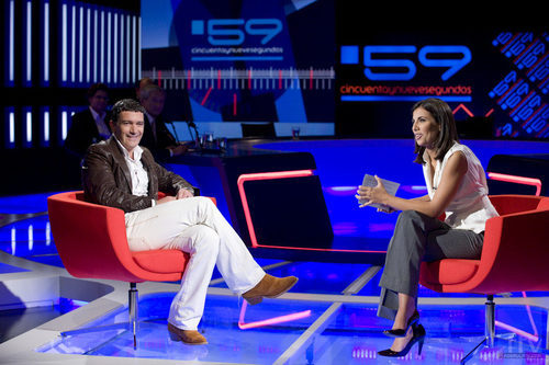 Antonio Banderas, junto a Ana Pastor, en su visita a '59 segundos'.