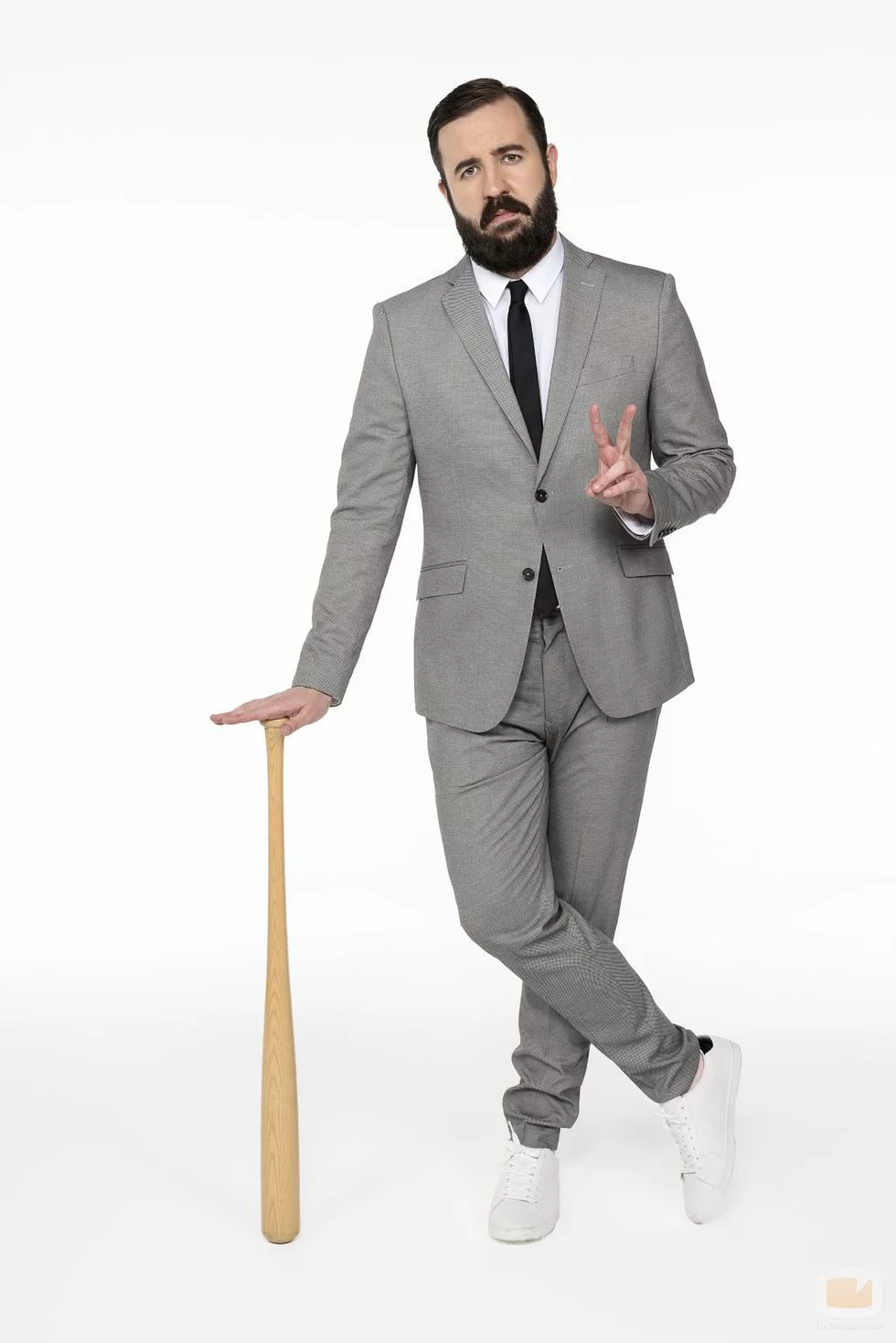 El presentador de 'CCN: Comedy Central News' posa apoyado en un bate con motivo de la tercera temporada del programa.