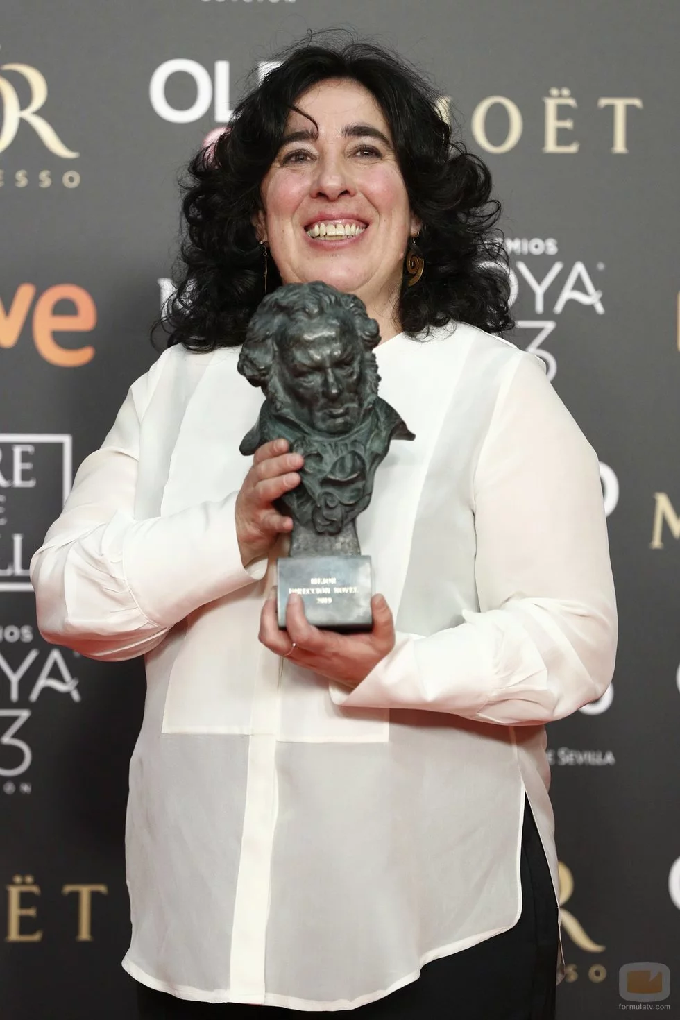 Arantxa Echevarría con su Goya 2019 a Mejor dirección novel por "Carmen y Lola"