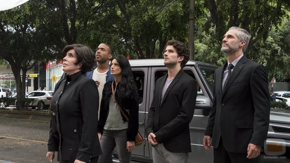 Los actores Arturo Rios, Verónica Castro, Aislinn Derbez, Sawandi Wilson, Dario Yazbek durante una escena de la primera temporada de 'La casa de las flores', la exitosa serie de Netflix.