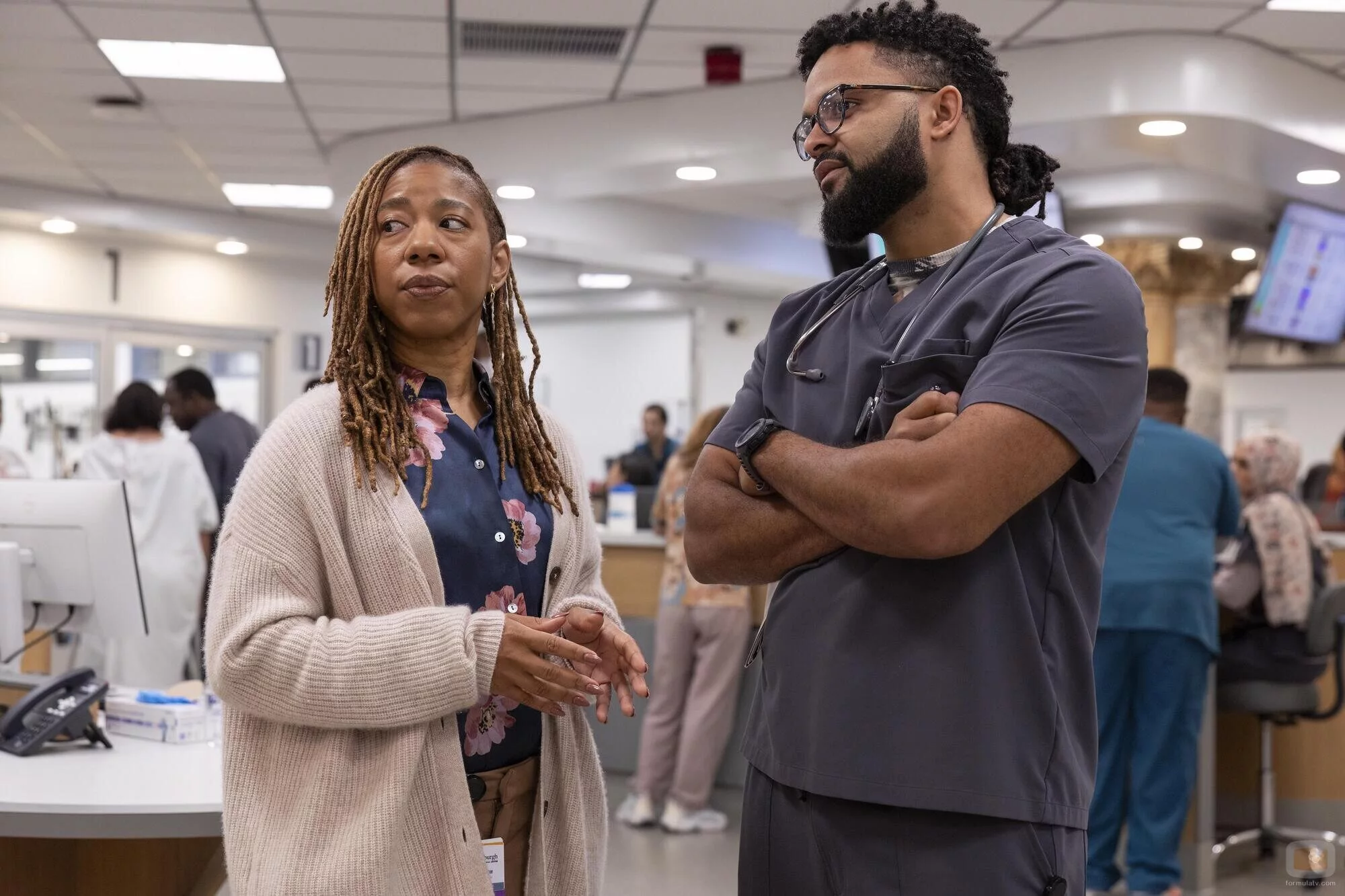 La actriz Ashley Romans (Joyce St. Claire) en una imagen promocional del capítulo '9:00 A.M.' de la serie 'The Pitt'.