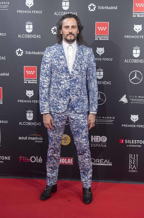 El actor Asier Etxeandía que forma parte de proyectos como 'La línea invisible', 'Sky Rojo' o 'Volver colección' posa en la alfombra roja de los Premios Feroz 2020.