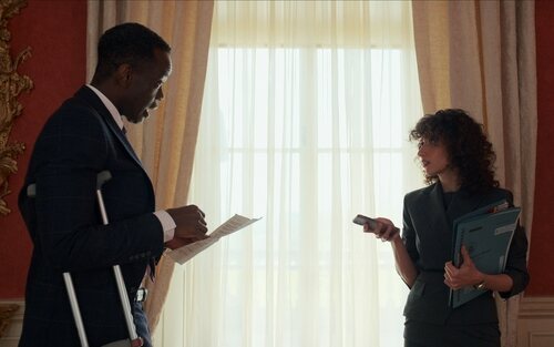 Ato Essandoh y Rosaline Elbay aparecen en una imagen promocional del capítulo 2x05 de la serie 'La diplomática'.
