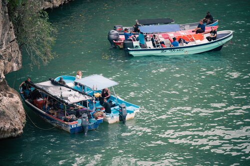 Varias personas del equipo técnico del programa se encuentran en cuatro barcos preparando la grabación. Además, en una de esas navegación están los elementos necesario para llevar a cabo el rodaje.