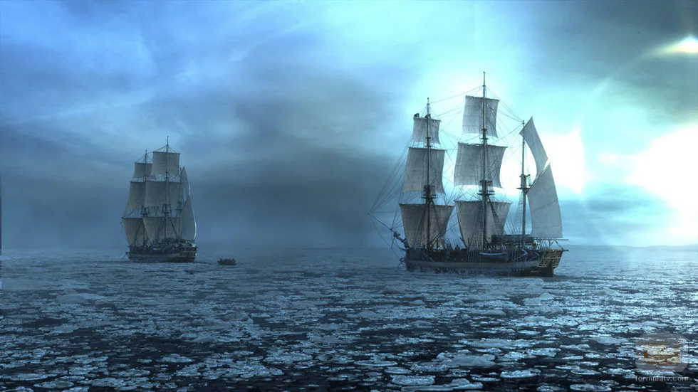 Los barcos de los protagonistas surcan aguas heladas en 'The Terror', la serie de AMC inspirada en hechos reales y producida por Ridley Scott.