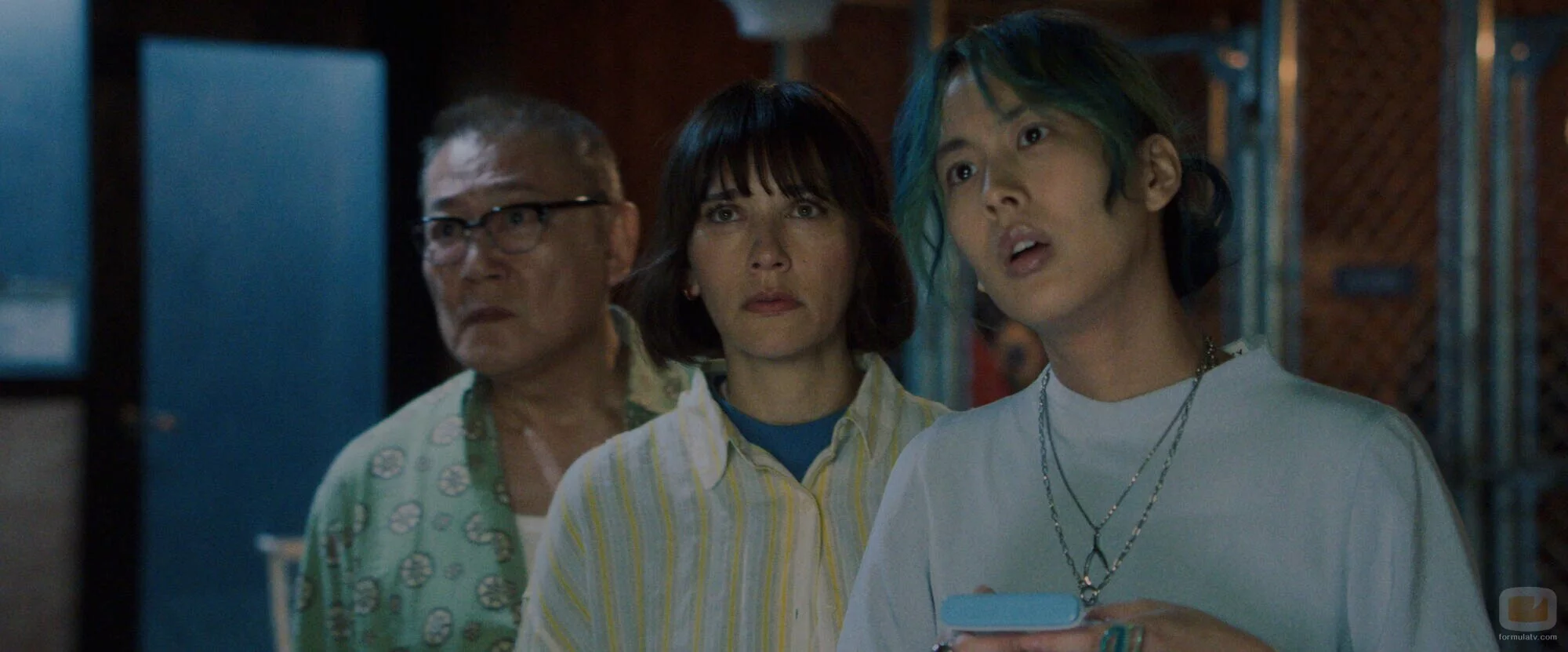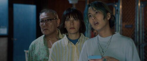 El reparto en una imagen promocional del episodio 'Basura o No-Basura' de la serie 'Sunny', la serie de Apple TV+.