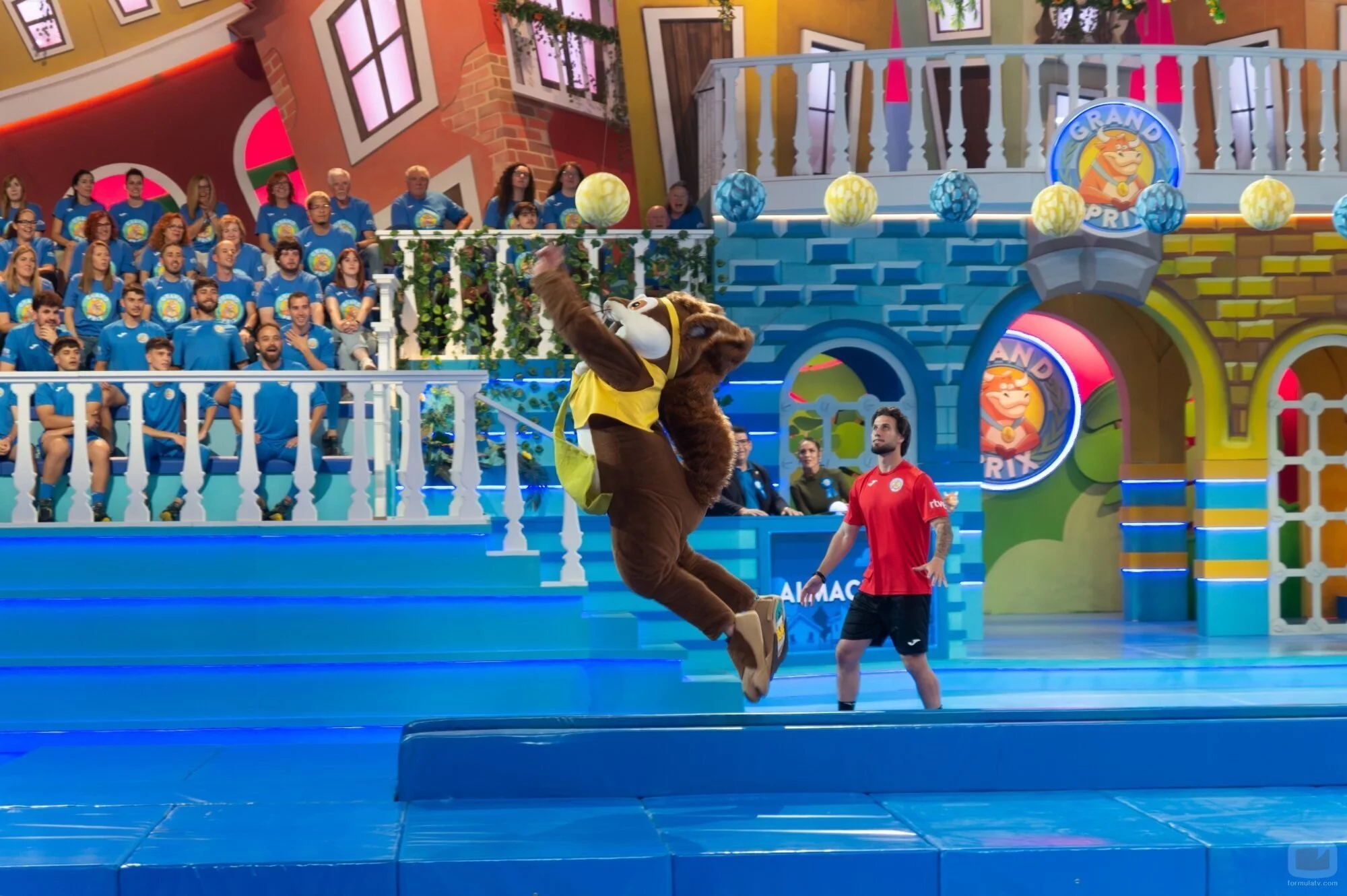 Un concursante del equipo de Bembibre (León) disfrazado realizando una de las pruebas del 'Grand Prix' en la edición de 2024.