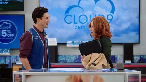 Ben Feldman y Maria Thayer aparecen en una imagen del episodio 6x11 de 'Superstore' con fecha de estreno el Jueves, 04 de Marzo de 2021.