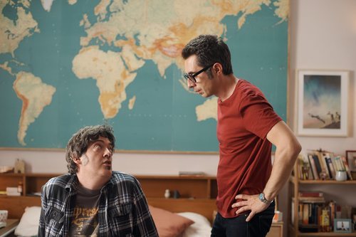 En la segunda temporada de 'Mira lo que has hecho', Berto y Sandra tienen que lidiar con la infancia de su primer hijo mientras sobrellevan como pueden el embarazo de mellizos. En la imagen aparecen Berto y su hijo.