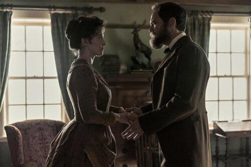 Betty Gilpin y Michael Shannon aparecen en una imagen promocional del episodio 1x02 de 'Death by Lightning' con fecha de estreno el Jueves, 06 de Noviembre de 2025.