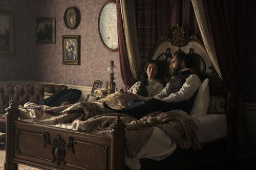 Michael Shannon y Betty Gilpin aparecen en una foto del episodio 1x04 de 'Death by Lightning' con fecha de estreno el Jueves, 06 de Noviembre de 2025.