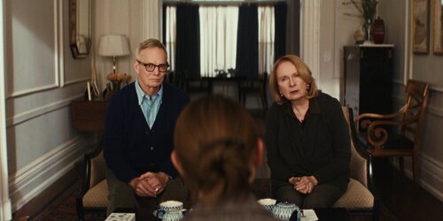 Kate Burton y Bill Irwin aparecen en una imagen del capítulo 1x04 de la serie 'The Beast in Me', la serie de televisión de Netflix.