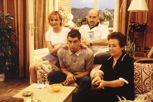 Blanca Portillo, Javier Cámara, Toni Cantó y Amparo Baró viendo la televisión en '7 vidas'
