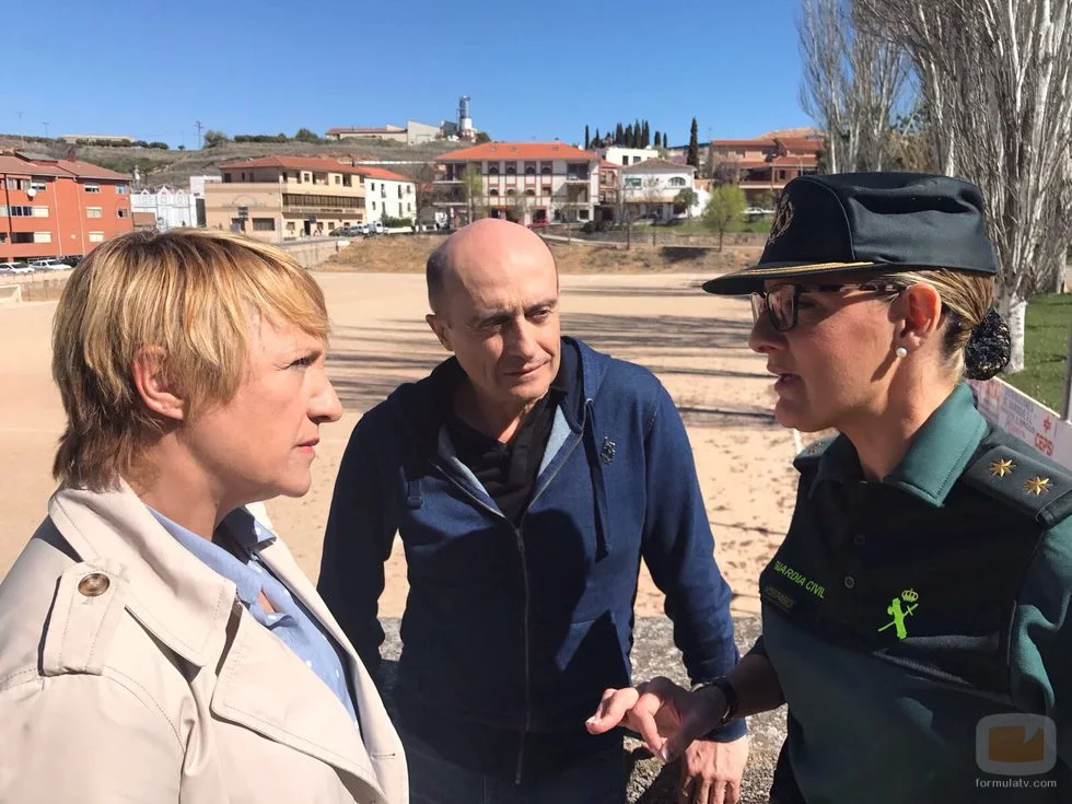 Blanca Portillo y Pepe Viyuela con una agente de la Guardia Civil en 'Ellas'