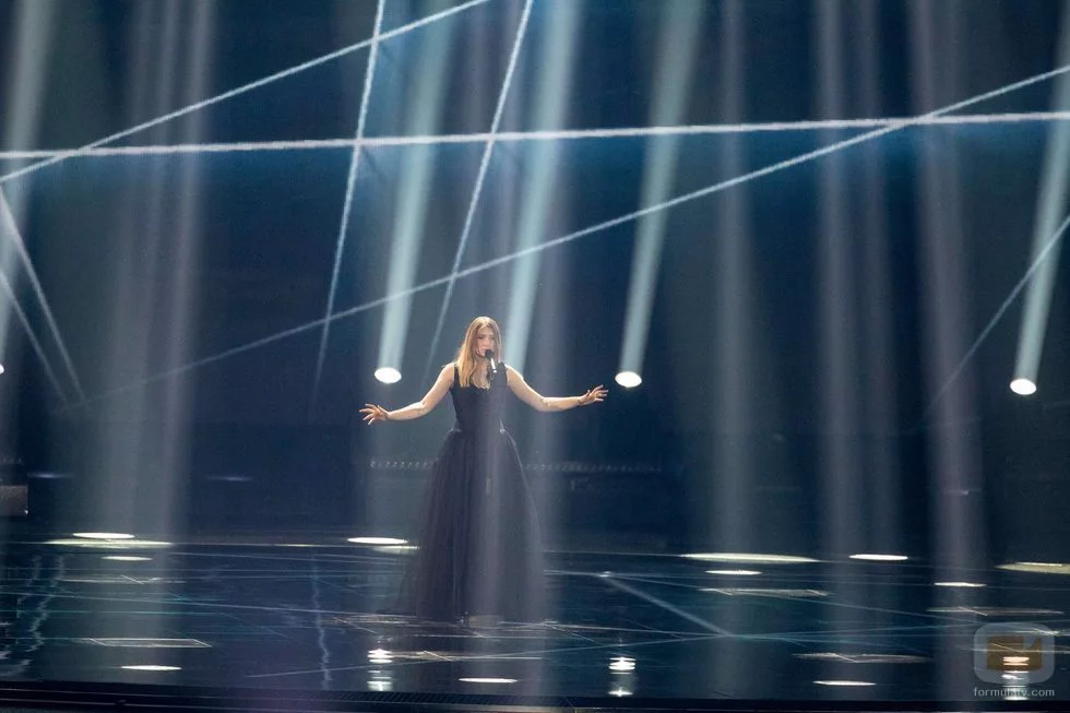 La joven cantante Blanche, representante de Bélgica, interpreta la canción "City Lights" durante la Gran Final de Eurovisión 2017.