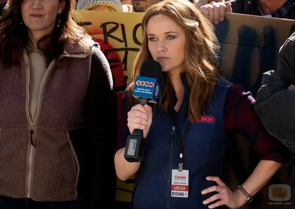 Bradley Jackson, el personaje de Reese Witherspoon, informa de lo que ocurre en una manifestación para el medio en el que trabaja.