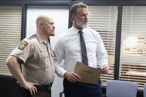 El intérprete Branton Box (Sheriff Jonny) en una foto del capítulo 1x04 de la serie 'Las esposas cazadoras', la serie de televisión de Netflix.