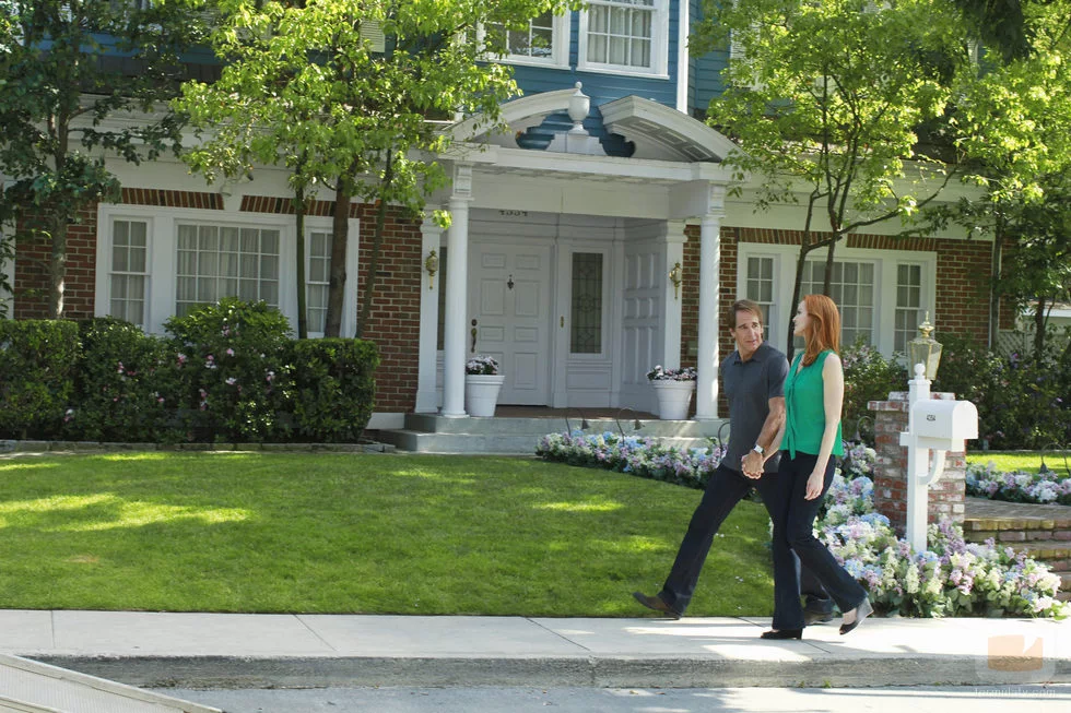 Bree y su abogado Trip Weston caminan por Wisteria Lane en 'Mujeres Desesperadas'