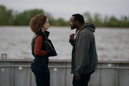 Liz Caribel Sierra y Brian Tyree Henry aparecen en una imagen promocional del episodio 1x04 de 'Dope Thief' con fecha de estreno el Viernes, 28 de Marzo de 2025.