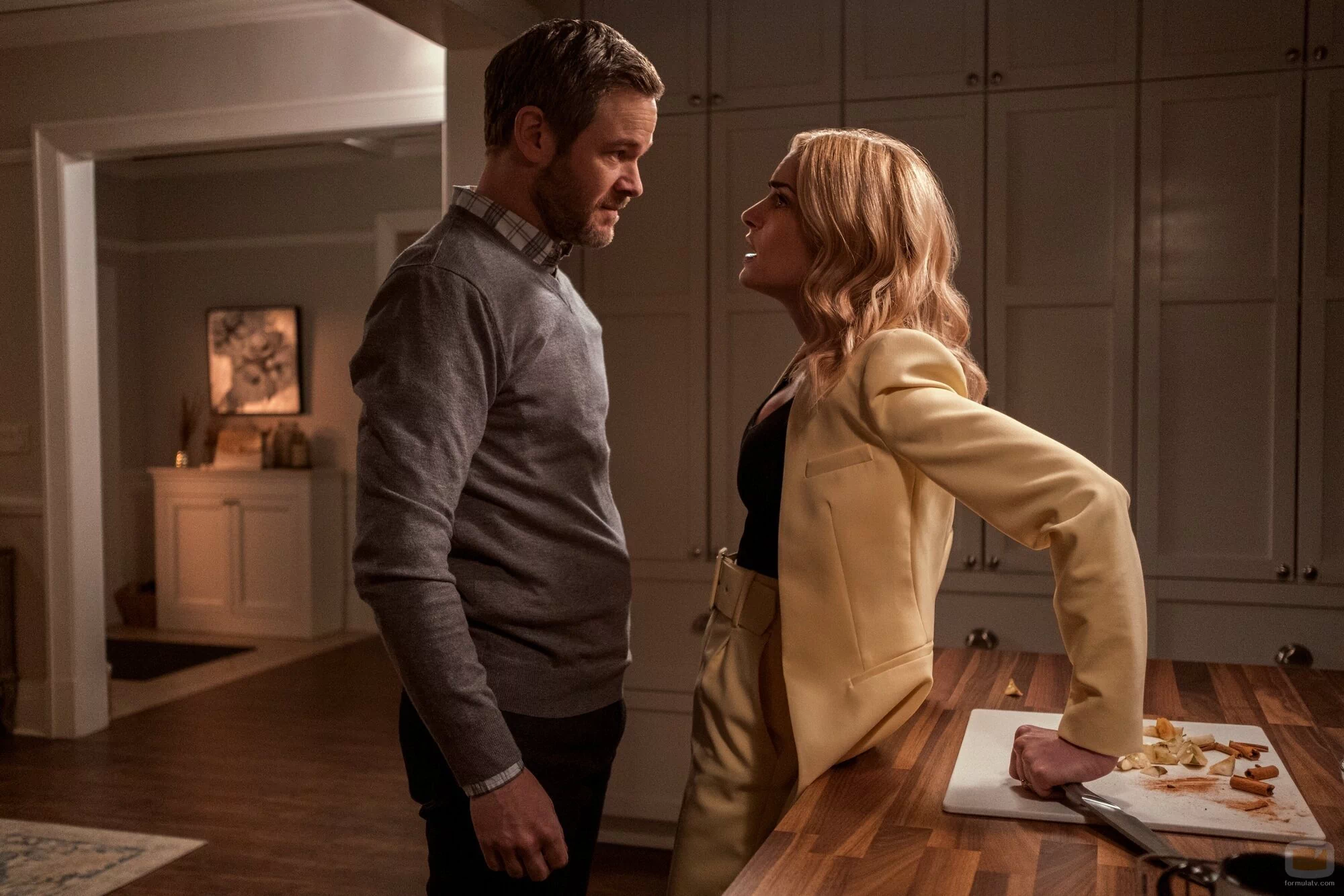 Aaron Ashmore y Brianne Howey aparecen en una foto promocional del episodio 'Matar a Gil' de la serie 'Ginny & Georgia'.