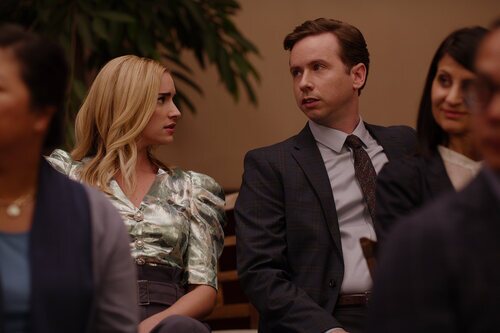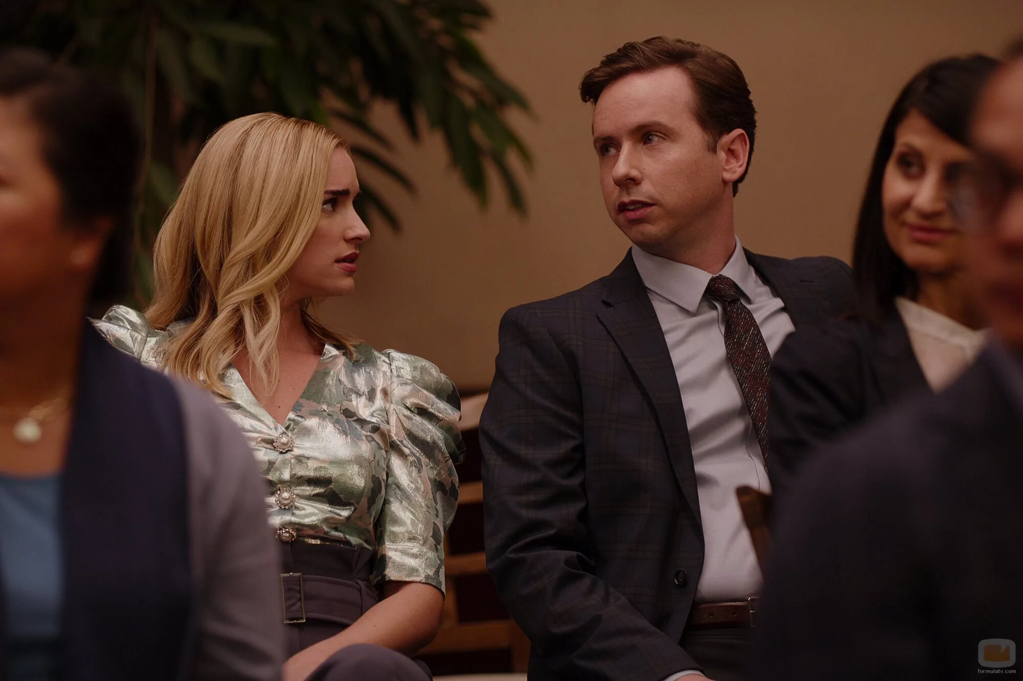 Brianne Howey y Dan Beirne aparecen en una imagen promocional del capítulo 'Lydia Bennet es cien por cien feminista' de 'Ginny y Georgia'.