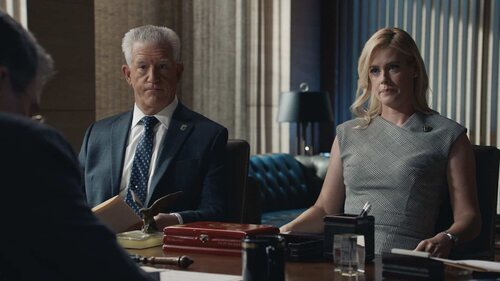 Bridget Moynahan y Gregory Jbara aparecen en una foto del episodio 13x03 de la serie 'Blue Bloods' con fecha de estreno el Viernes, 21 de Octubre de 2022.