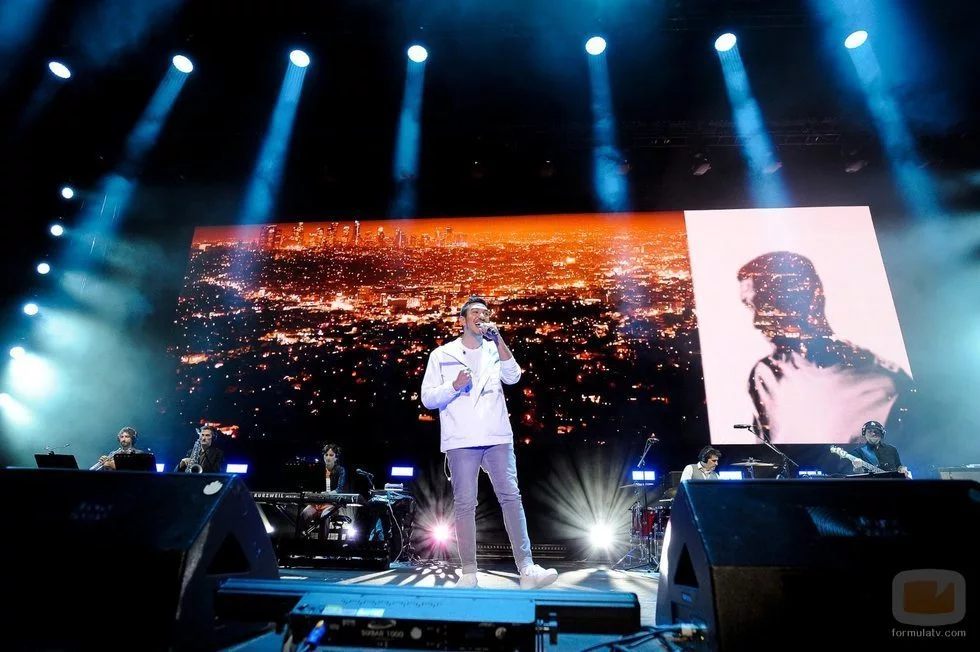 El concursante de 'OT 2020' interpreta uno de sus temas en el concierto que tuvo lugar en el WiZink Center en Madrid.