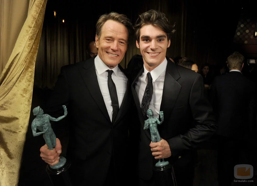 Bryan Cranston y RJ Mitte con el premio al Mejor Drama en los SAG 2014