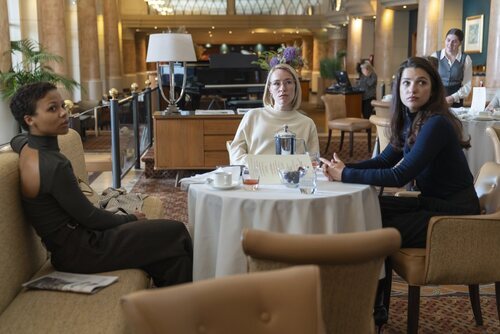 Myha'la Herrold, Marisa Abela y Sarah Goldberg aparecen en una foto del episodio 3x03 de la serie 'Industry' con fecha de estreno el Domingo, 25 de Agosto de 2024.