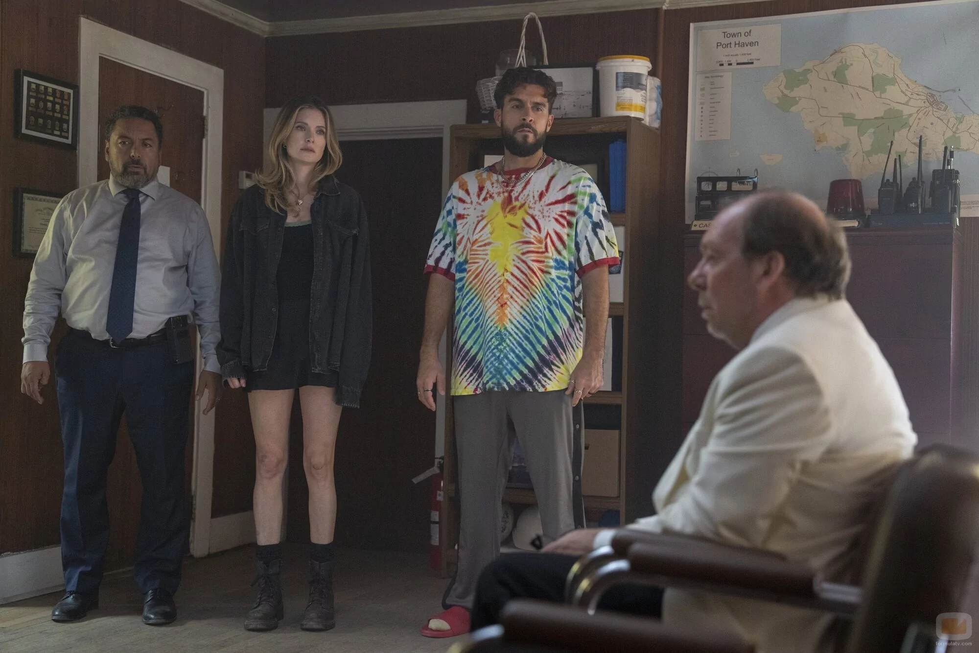 Josh Segarra, Felix Solis, Meghann Fahy y Bill Camp aparecen en una escena del capítulo 1x05 de 'Sirenas' con fecha de estreno el Jueves, 22 de Mayo de 2025.