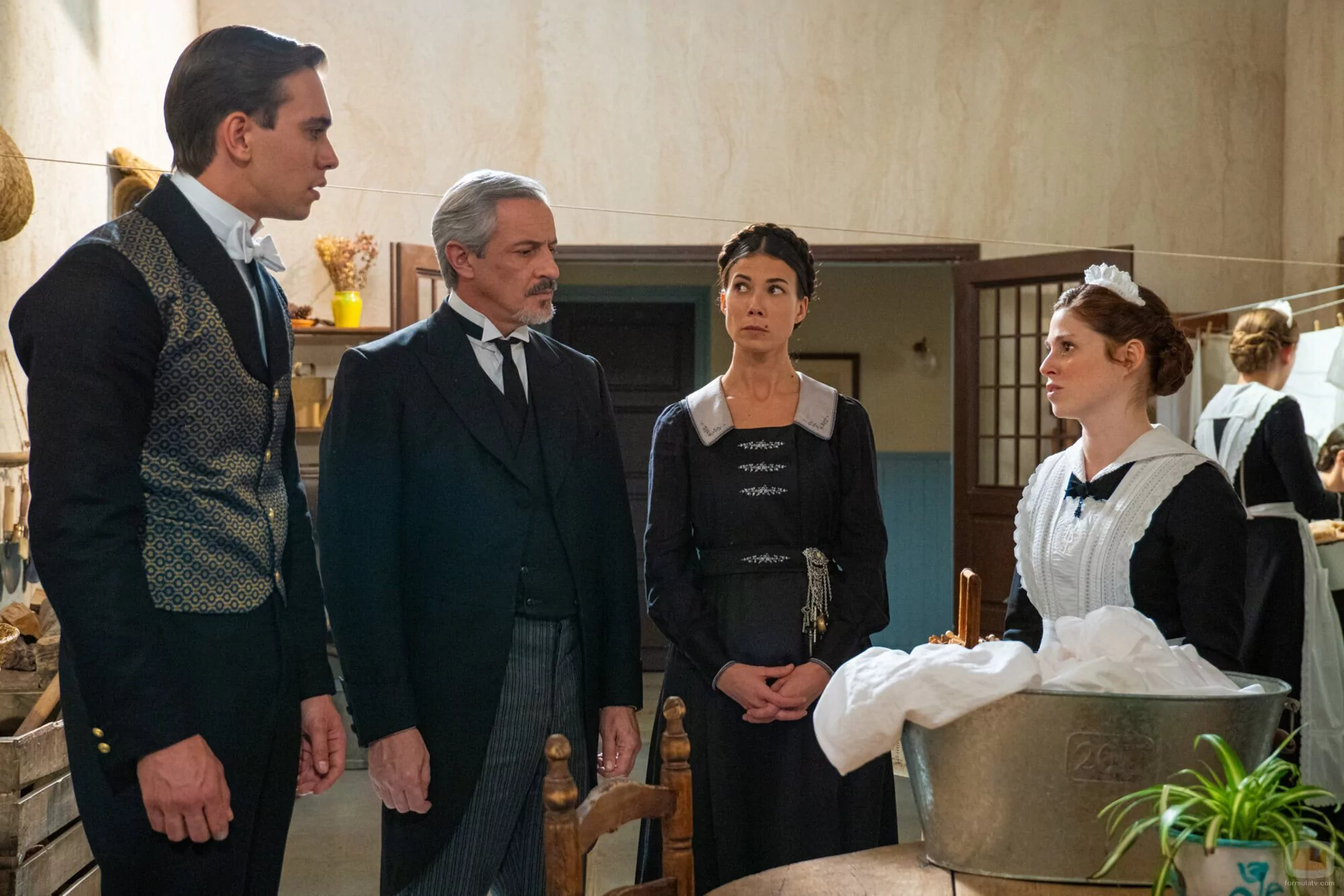 Andrea Del Río, Sara Molina, Jose Miguel Blanco y Fernando Coronado aparecen en una escena del capítulo 5x17 de la serie 'La promesa'.