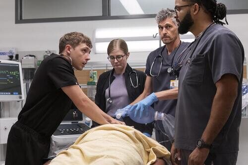 Ned Brower, Gerran Howell y Taylor Dearden aparecen en una escena del episodio 1x02 de la serie 'The Pitt' con fecha de estreno el Jueves, 09 de Enero de 2025.
