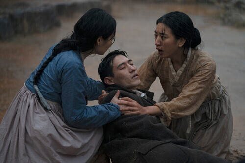Steve Sanghyun Noh, Minha Kim y Inji Jeong aparecen en una imagen promocional del episodio 'Capítulo tres' de la serie 'Pachinko'.